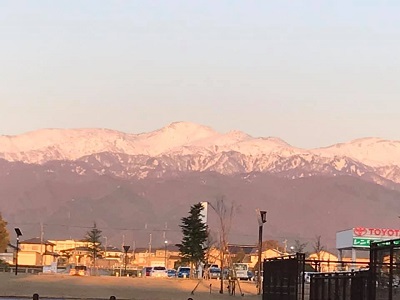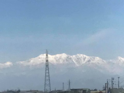 車中から立山連峰。