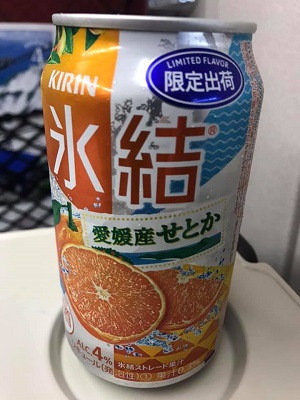 1席空いているのを発見して迷わず隣に座ってる女性に「そこ空いてます?」と尋ね、「空いてます」という返事を聞くや否や着席(普段だと女性客の隣は遠慮する)。らっきー。さっそくキリン氷結「愛媛産せとか味」(1本につき1円昨年の西日本豪雨の被災地に寄付される)を飲み出す。引かれたかな?
