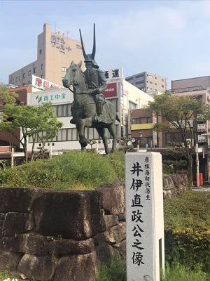 西口に出ると井伊直政像。