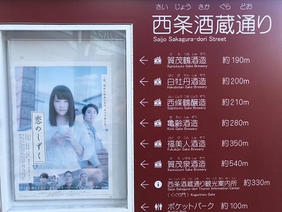 山陽本線で西条に移動。東横イン東広島西条駅前にチェックイン。ポイントで泊まろうとするが、「デラックスシングルとの差額1000円発生しますが?」と言われる。あれそんな部屋予約したっけ?まあいいや。部屋で充電してから飯食いに出る。行こうと思ってた(「恋のしずく」のロケ地)「ちゅうしん蔵」は自分の前の客が「満席」と言われてたので断念、「佛蘭西屋」は1人で行くとこではなさそう。とりあえず酒蔵通りをふらふら。これ凄いなしかし。駅のすぐ近くで。これは明日朝また写真撮りにこなきゃ。