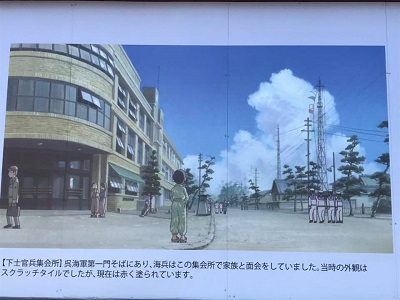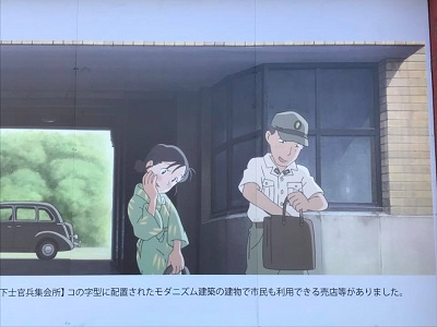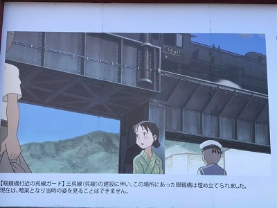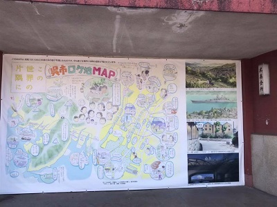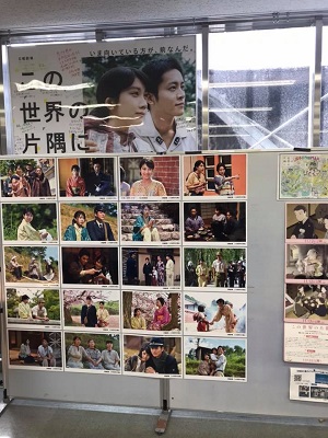 アニメよりドラマの展示の方が大きくなっていた。観光案内所としては優劣なんかないし新しい方を表に出すだろうなあ。流れる映像も北條家再現の様子。呉出身のプロデューサーが呉の古民家を解体して緑山スタジオに運び、再生して北條家にしたらしい。今はもうないんだろうな。「構想3年」ということだからアニメのヒットを受けて企画が立てられたというわけはないようだ。むしろ企画にアニメがヒットしたおかげでブーストかかった感じかな?そういう意味を込めての「Special Thanks」だったのかもしれないけど誤解を生んだかなあ。事前に一言言わない方がいいと思ったのか?