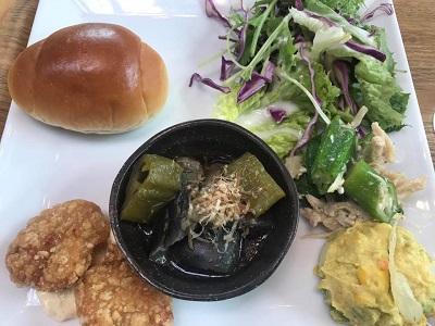 昼食は鉄道博物館ではなく、隣の「緑の館」の京野菜レストランで。実際「京野菜」は水菜と万願寺とうがらしだけのようだが。