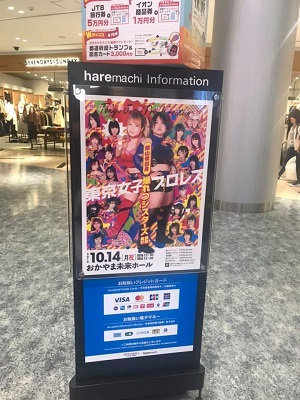 地下道通ってイオンモールに。凄い、ちゃんとイベントとして東京女子のポスター出てる。前回DDTでもこんなの出てたっけ?
