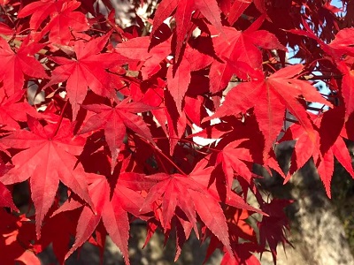 参道の紅葉も日に当たってると赤が鮮やか。行って良かった。