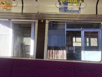 明智駅車庫。予定を追加しなかったので12時36分発のに乗り込み、車内で昼飯のサンドイッチ2個目。今日の食事はこんなもんだろう。