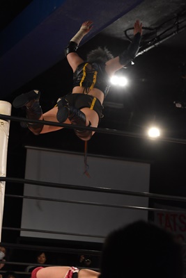 バズソーキックからクラッシュラビットヒート(右写真)、カウント3。