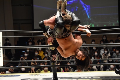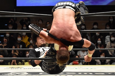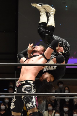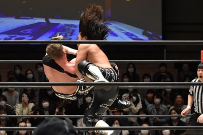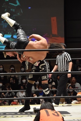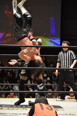 佐々木トルネードスープレックス(左写真)、カウント2。