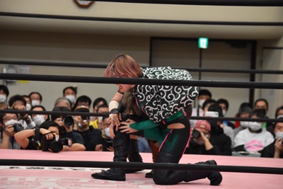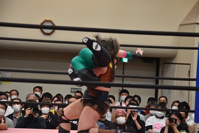のどかコーナー上のハイパミにパンチ(左写真)、