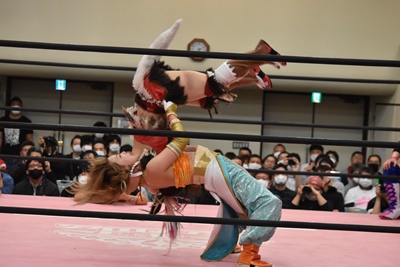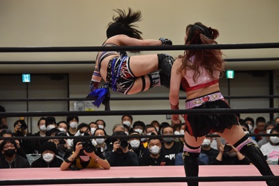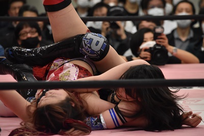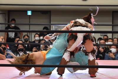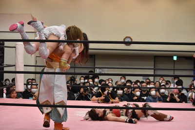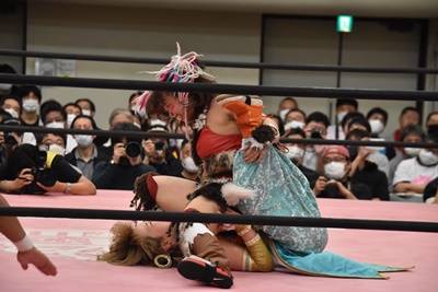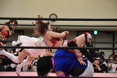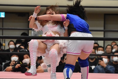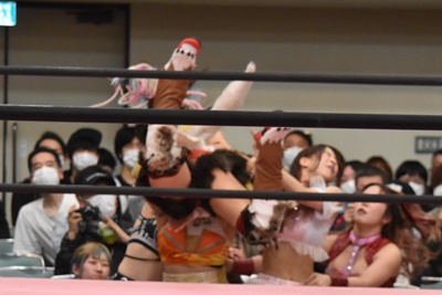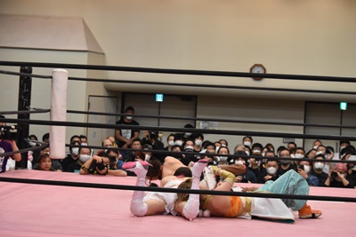 みずぴょんもドロップキック打ち返し、カサドーラで丸め込む(左写真)、