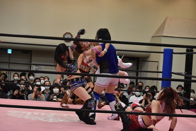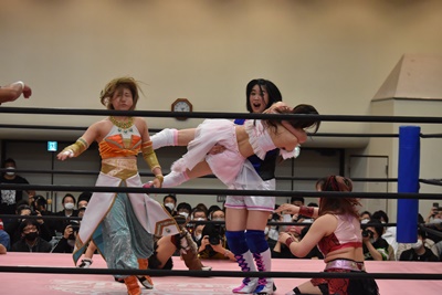 セミファイナル 坂崎ユカ&瑞希&乃蒼ヒカリ vs 中島翔子&愛野ユキ&舞海魅星