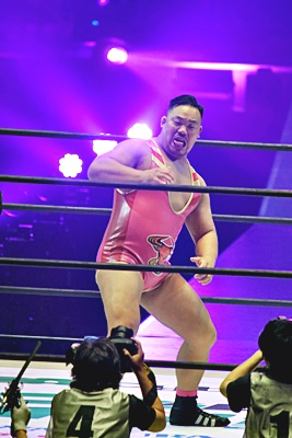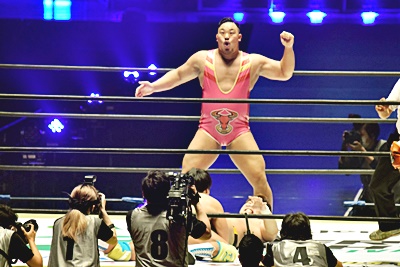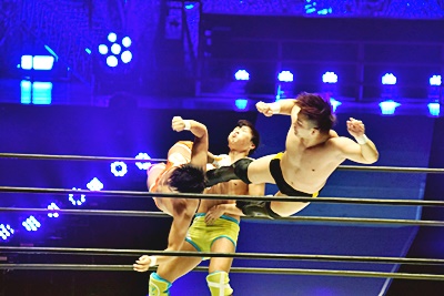 飯野2人にショルダーブロック、岡田をコーナーに振ってコーナースプラッシュ(左写真)、