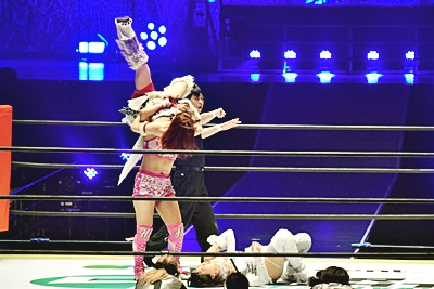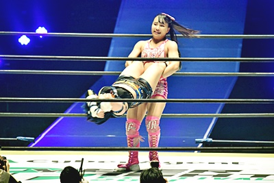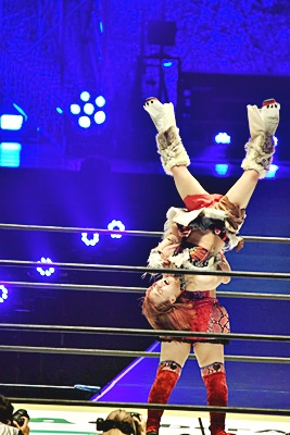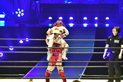 ボディスラム!(右写真)これには会場からも驚きの声上がったな。なんせこの人アイドルだし。