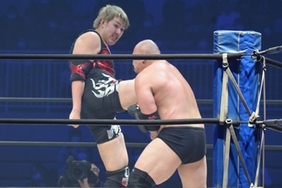 岡林樋口に串刺しラリアット(左写真)、