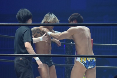 上野(17分10秒 スリーパーでレフェリーストップ)坂口