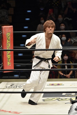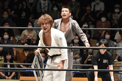 MAOが柔道着着て入場(右写真)。