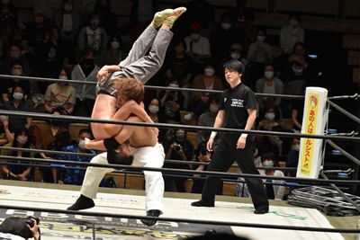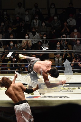 青木はトペ・スイシーダ、MAOプラケースで迎撃(左写真)。