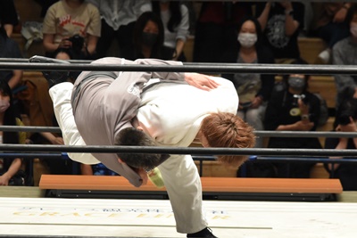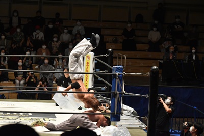 青木(5分41秒 投げによるテーブルクラッシュ)MAO