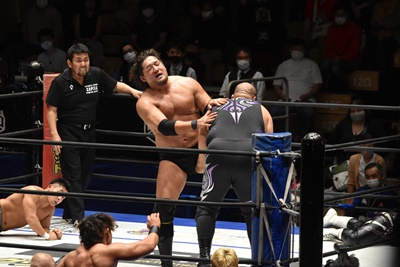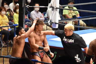 佐々木大輔&遠藤哲哉&マッド・ポーリー vs 高尾蒼馬&石川修司&島谷常寛with火野裕士