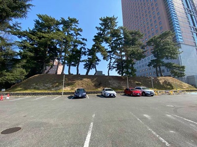 そこで歩いて県庁まで戻り前橋城の土塁を見ることに。今回は駐車場まで入り込んでみた。iPhoneの広角結構曲がるな。