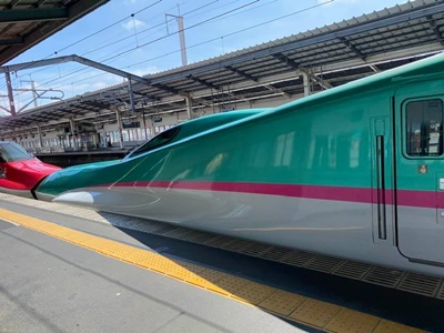 意外に時間がかかり、駅に着いたら新幹線発車の8時42分寸前。すぐに階段上がって乗車。車内の冷房がありがたい。