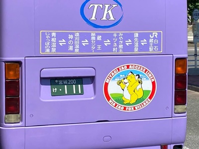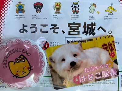 なぜか駅員に見送られてバス出発。グッズももらった。今年6月からこの路線開通して800円でキツネ村行けるようになった(タクシーだと片道5000円)んだけど、「キツネ村を地域の観光資源として活用しよう」という地元の意見一致によるプロジェクトなのかな?