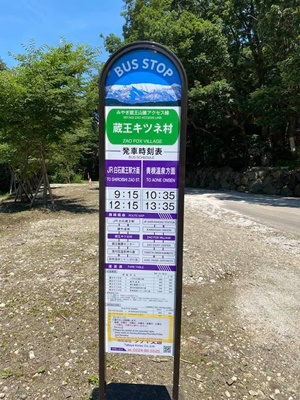 10時10分発のタケヤ交通バスはもう入線していた。いろはす買って乗り込む。男ばっかり4人乗ってたが全員キツネ村下車だった。終点の「青根温泉」ってどんなとこなんだろうな?