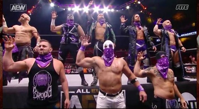9時からAEW Dynamite。第1試合はELITE squadとDARK ORDERの5vs5イリミネーション。日本的だなあ。DARK ORDERの入場がカッコよかった。