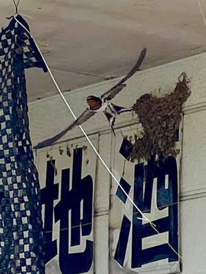 10時過ぎに旅館出てバス停に。歩いてたらバスに抜かれた。昨日見た「七沢城跡」バス停の時刻表よく見たら平日のとこに「10時20分」とあった。昨日休日の欄しか見てなくて「9時か。早すぎるな」と思ったのが勘違いだった。結局昨日降りた「七沢温泉入口」まで歩く。酒屋の裏にツバメが飛んで行ったので巣があるのかと見たらあった。親飛び去って行った。警戒されたか?
