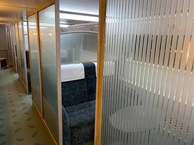 二階建て車両の一階は簡易個室。今のEXEには当然ない。