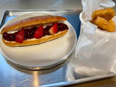 甘めのコッペパンサンドとナゲットという謎セットに。