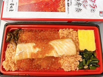 朝食は「駅弁屋 祭」で買った「こぼれイクラととろサーモンハラス焼弁当」。品川に着く前に食べ終わる。