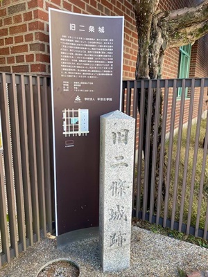 ちょっと横に逸れたら「旧二條城跡」の碑が。今の二条城は徳川が建てたもの。