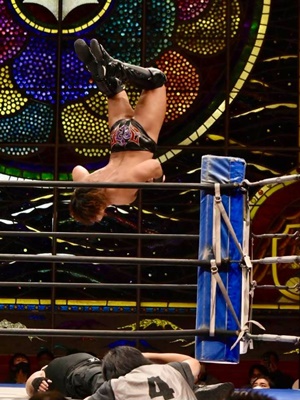 メインで上野が火野から勝利。秋山戦にしろ「できすぎ」と思われるかもしれないが、WRはそれだけの説得力がある技。