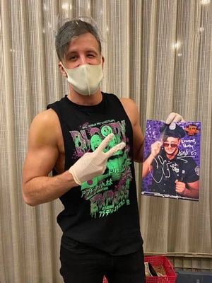 試合後クリスの物販に行き2年前の話をする。クリスとは全編日本語で会話するようになったなあ。