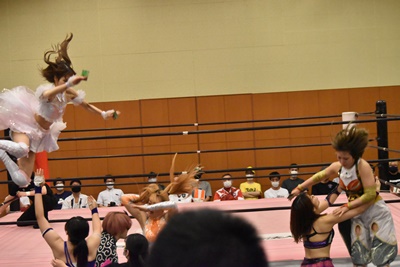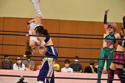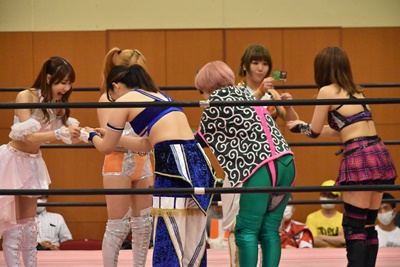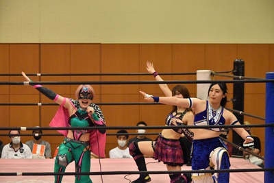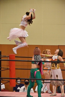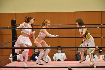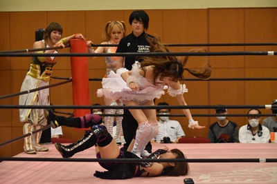 セミファイナル 坂崎ユカ&瑞希&小橋マリカ vs ハイパーミサヲ&角田奈穂&桐生真弥