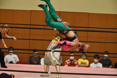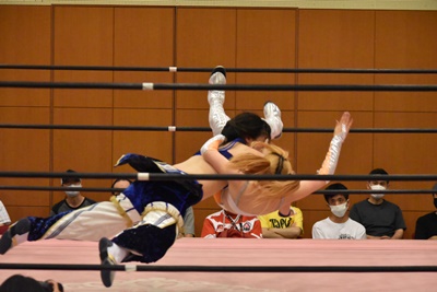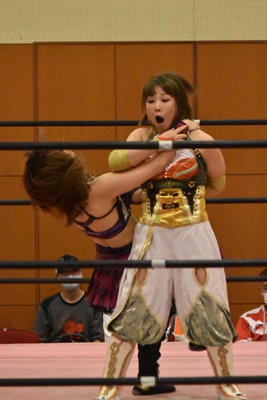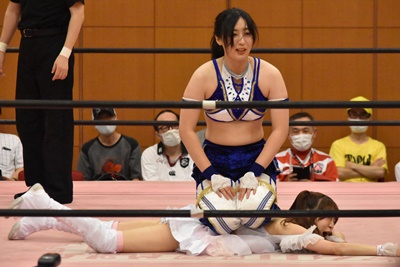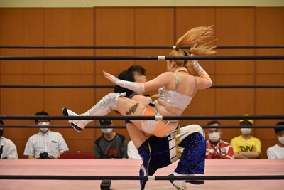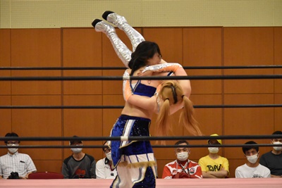 真弥みずぴょんをボディスラム(左写真)、