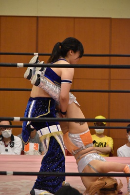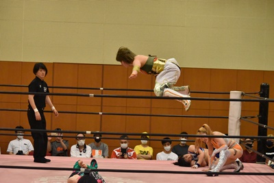 マリカドロップキック(右写真)、ハイパミは真弥にタッチ。。