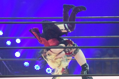 美しいブリッジでフォール(左写真)、カウント3。