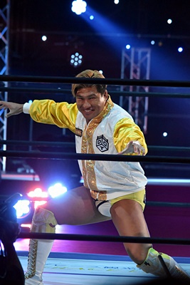 イルシオンは出場予定だったがCOVID-19陽性で急遽欠場となったエル・ユニコーンのマスクを手に入場(左写真)。「DDT25周年の未来」はこの2人だからな。