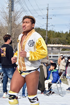 岡谷英樹入場(右写真)。