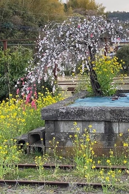 養老渓谷駅前の桜(右写真)。天気も良くて(昼間は)絶好の花見日和であった。帰りの列車が17時48分までなかったのが厳しかったが、大和選手が控室使わせてもらえるよう手筈整えてくれたので助かった。
