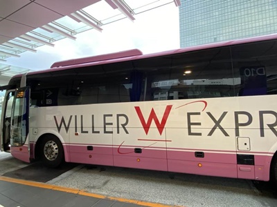 7時40分新宿発のWiller乗車。隣に人いなかったが席の間に仕切り板あったので2席使うことはできず。狭い。