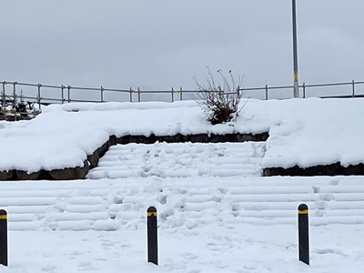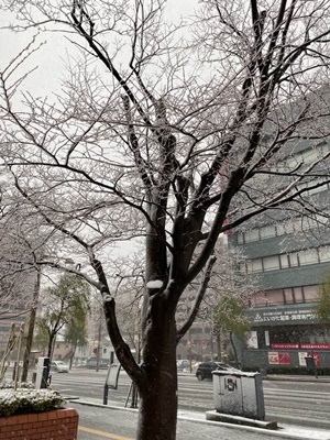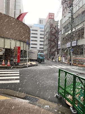 「推しの子」読んで10時にチェックアウト。腹ごなしのため歩くことに。しかし外は雪、気温は3℃。