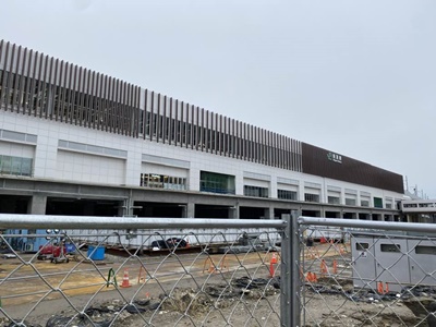 新駅舎。来年3月には万代広場として供用開始らしい。