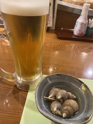20時16分のバスで駅に戻り、「壱勢」に。お通しはばい貝。
