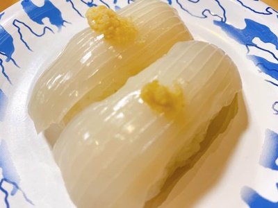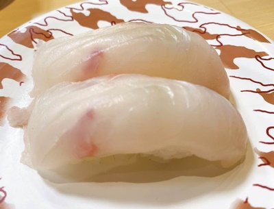 真鯛。他にアジとかサーモンとかトロ鉄火とか食べたが写真撮り忘れた。