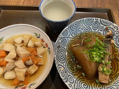 にごり酒だった。朝食でちょうど品切れになってたのっぺとぶり大根をつまみに。レストランではなかったが思い通りのものが食えたのでオールOKですね!(ふじわらのみい風)駅ビルの中にいる限り寒いこともない。