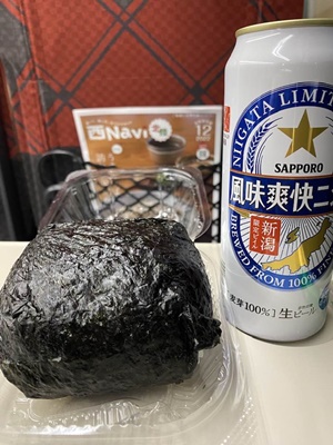 「ぽんしゅ館コンプレックス」で買った爆弾おにぎりをつまみに店舗すらないNewDaysで買った「風味爽快ニシテ」飲む。