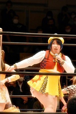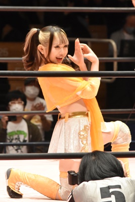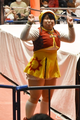 のどかと同日(2016年1月4日)デビューの小橋マリカも昔のコスチューム、昔のポーズで入場(左写真)。