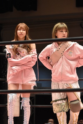 3/19両国大会でマジカルシュガーラビッツvs白昼夢のプリンセスタッグ選手権が決定(左写真)。